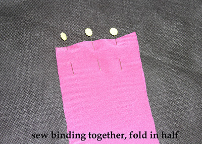 Sew binding end placing right sides together, creating a circle. After sewing the seam, open up and fold in half with wrong sides together.