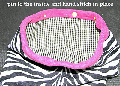 Step 15: Place the Pellon into the bag and secure it to the bag by hand sewing it low, leaving room for a bag to fold over the Pellon inside the bag.